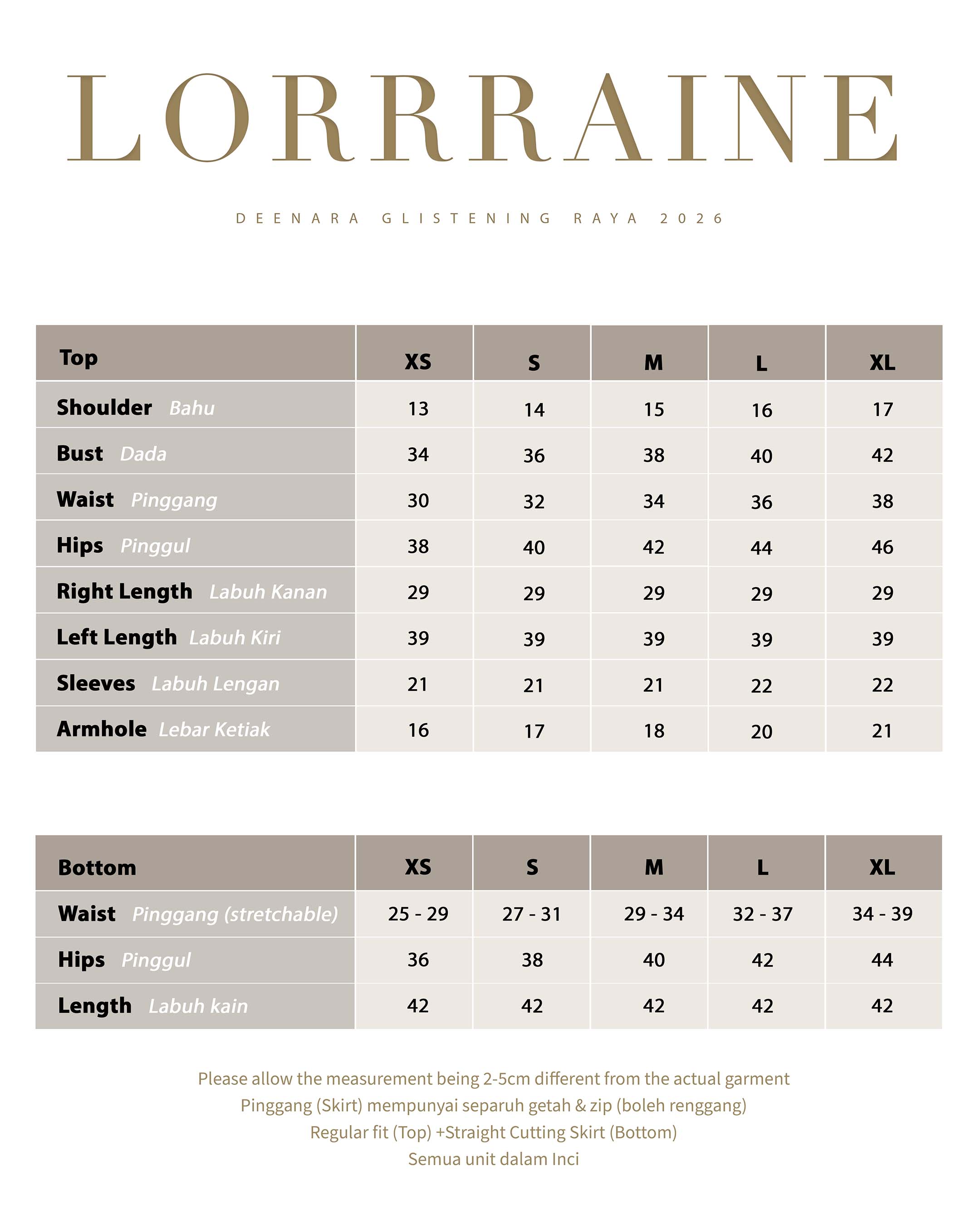 The top features delicate lace details that add a touch of femininity, while the top is full of soft drapes with a chic tuck-in style, creating a flowing silhouette that moves beautifully with every step. Perfect for festive occasions or special celebrations, Lorraine Kurung combines timeless sophistication with modern detailing ✨